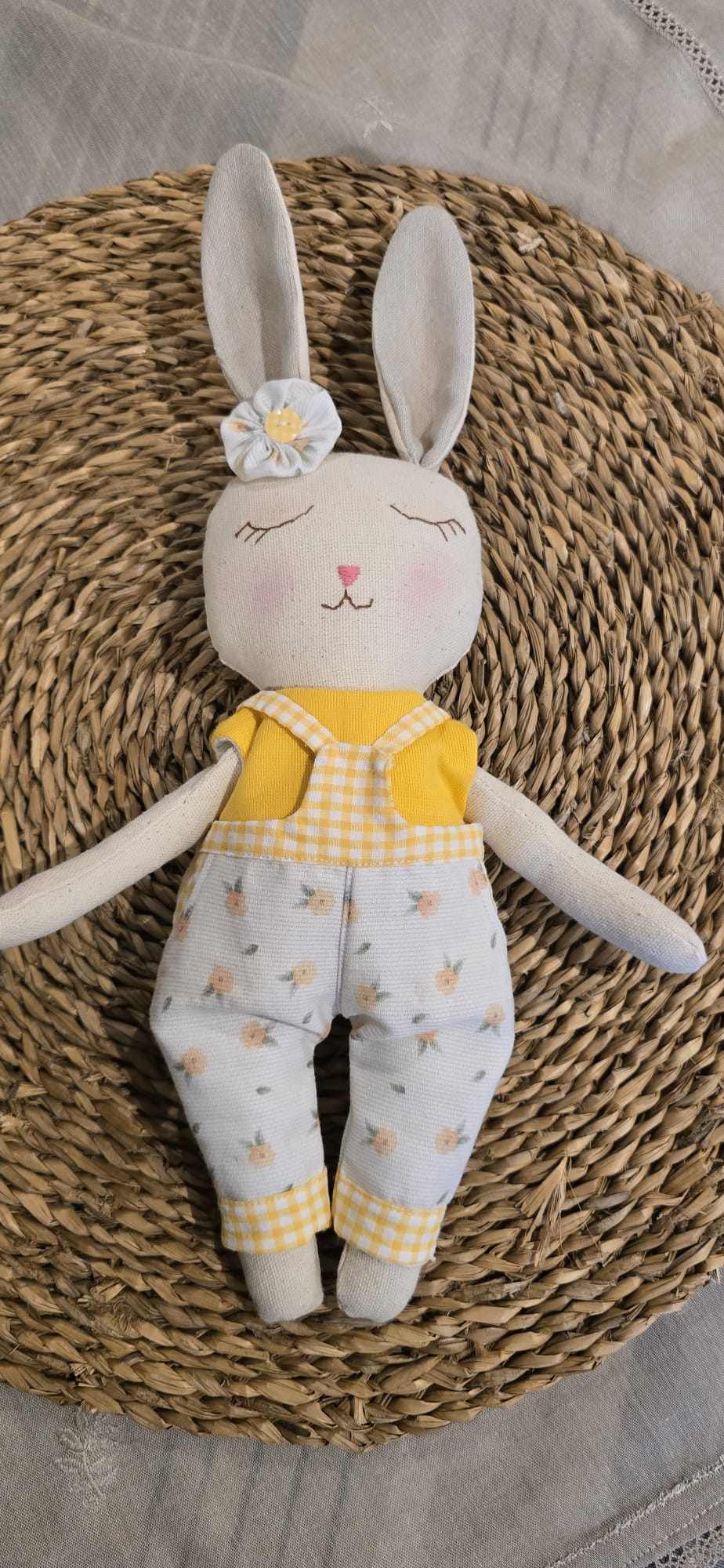 También realizo conejitas por encargo, que pueden personalizarse en colores, tejidos y pequeños detalles para crear una pieza única para ti.